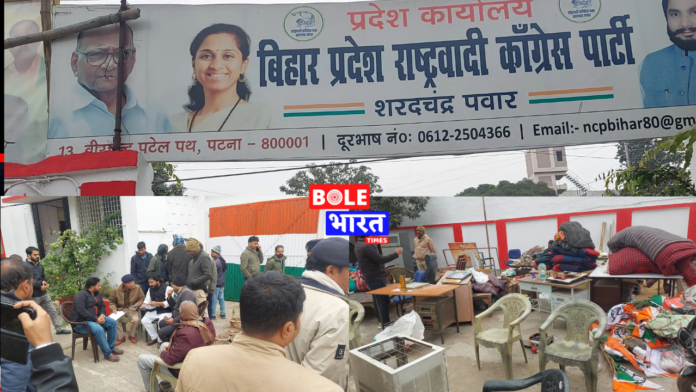 BIHAR POLITICS – जिला प्रशासन और पुलिस ने गुरुवार को राष्ट्रवादी कांग्रेस पार्टी(शरद पवार गुट) के प्रदेश कार्यायल को खाली करा दिया। इस दौरान पार्टी का सारा सामान परिसर में रखवा दिया गया। वही पार्टी ने इस कार्रवाई को लेकर सरकार पर सवाल उठाया है।